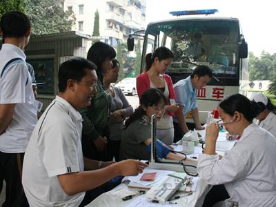 2009年4月23日,樂(lè)山市中心血站的采血車(chē)開(kāi)到我公司醫(yī)務(wù)室門(mén)口,為公司參加無(wú)償獻(xiàn)血的員工體檢、化驗(yàn)以及采血。